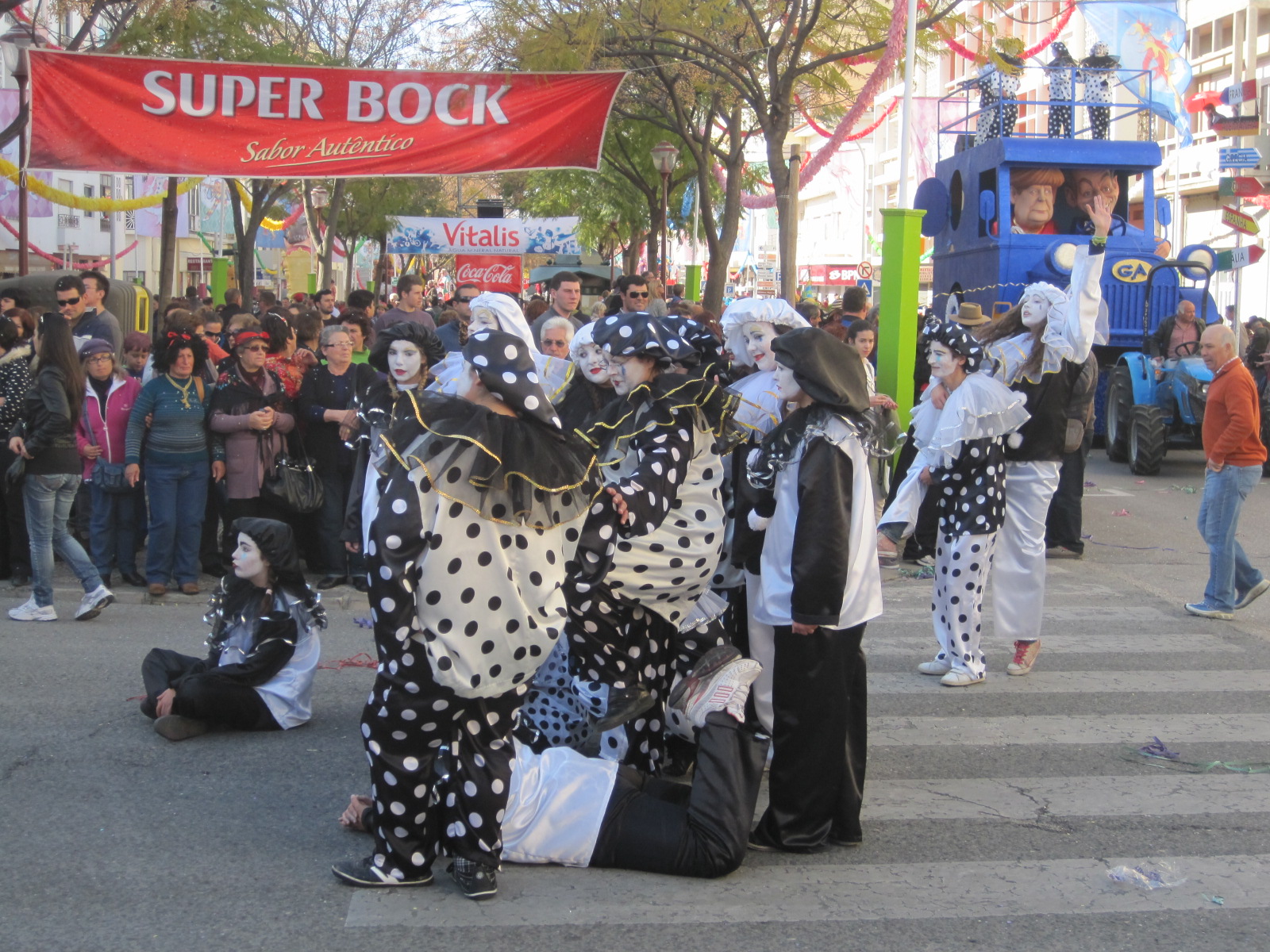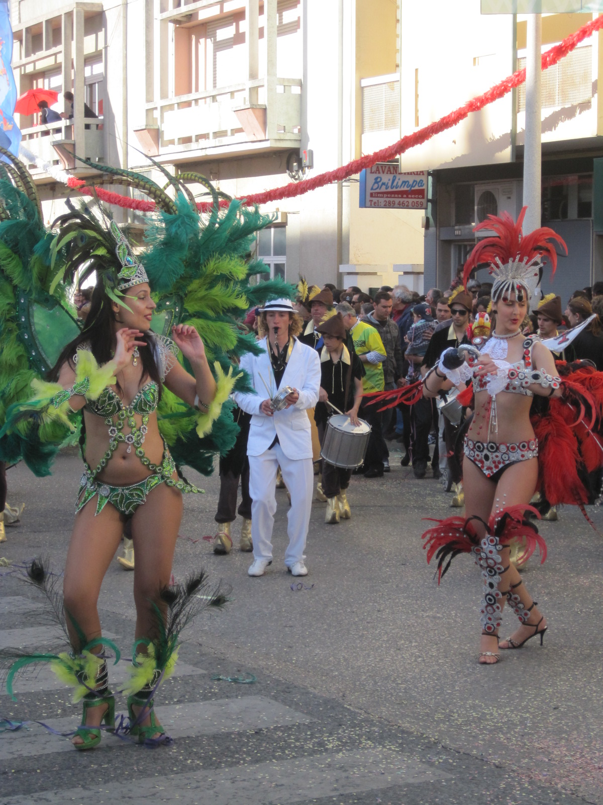 Much of Loule is a modern sprawl and we were uncertain about access to this, the Algarve’s biggest Carnaval celebration. For once, it turned out well. We approached the town on the N270 from Sao Bras de Alportel and at lunchtime traffic was minimal. There was the distinct impression that the townsfolk were conserving their energy to party later. Establishing where the barriers were on the main street, Avenida Jose da Costa Mealha, we parked a little way out on Rua Alfonso de Albuquerque and strolled back into town in pleasant sunshine.