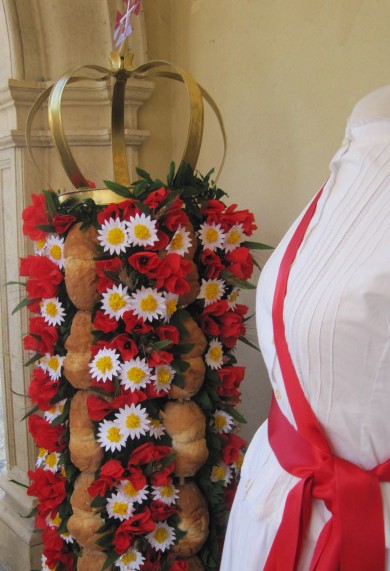 One of 400 breadbaskets carried aloft at the Festa dos Tabuleiros, Tomar