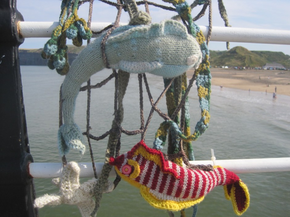 A stripey seahorse and his mate.