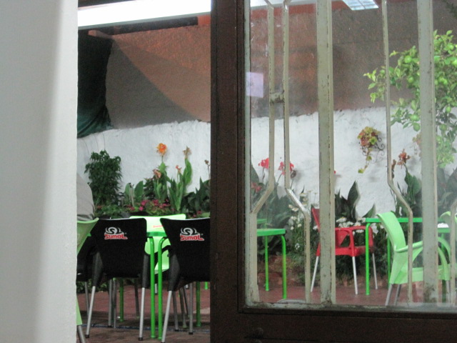 A table in the garden? Or stay inside.