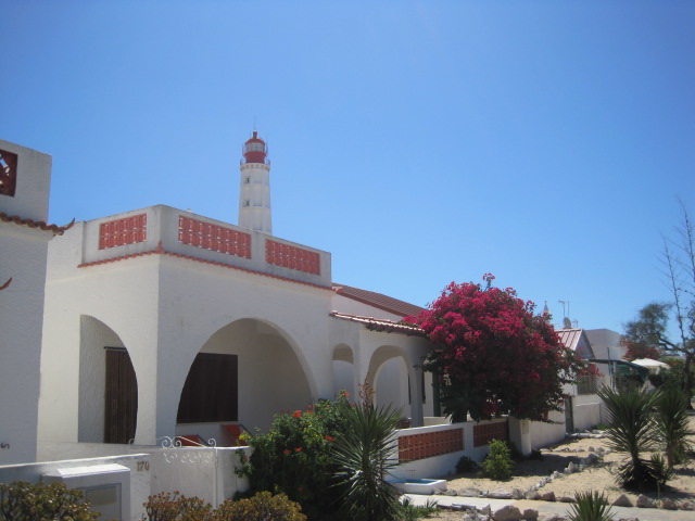 Gorgeous bougainvillea matching the pretty pink decoration on the house and the top of the lighthouse! Clever capture though I would slightly crop the sides out I think.