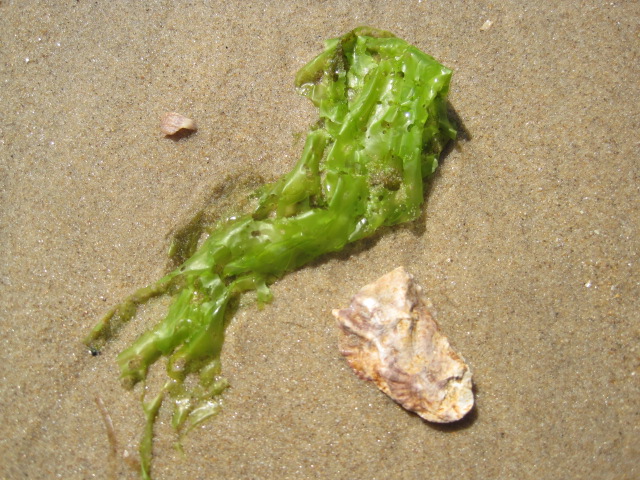 A fragment of shell with seaweed for company