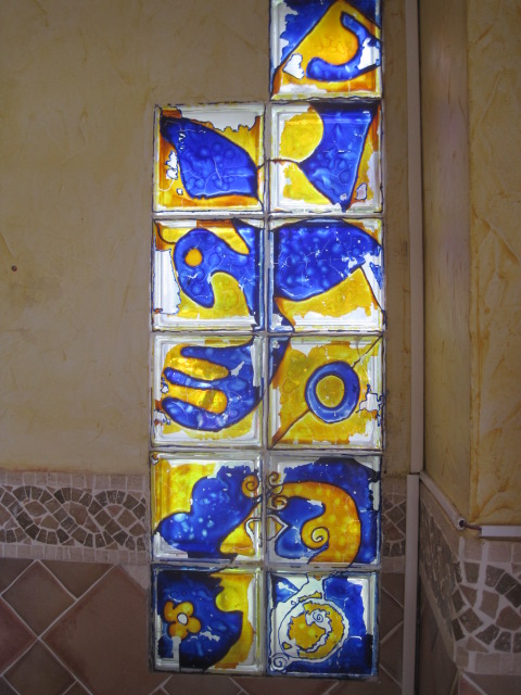Stained glass panel in the cafe