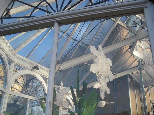There were paper stars suspended from the ceiling