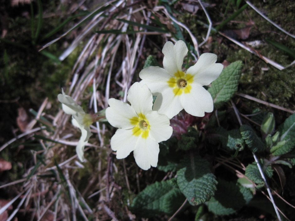 Early primroses peak through the tree roots