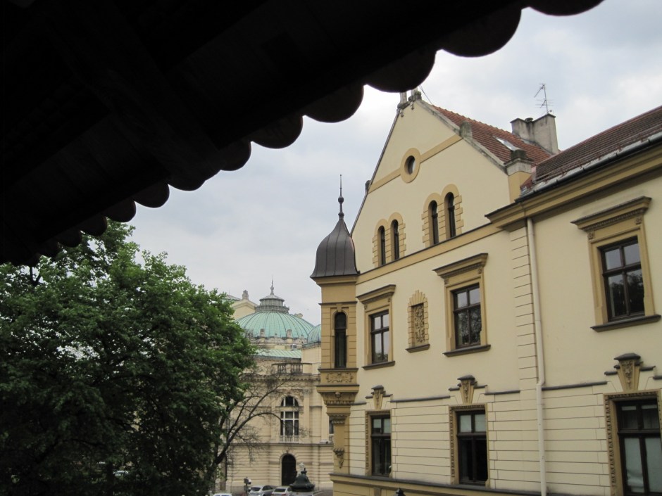 Looking out at a damp city