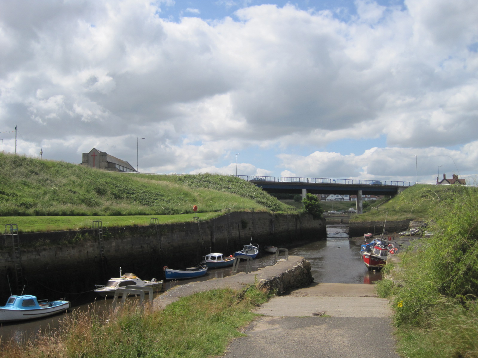 Tucked up below the wall