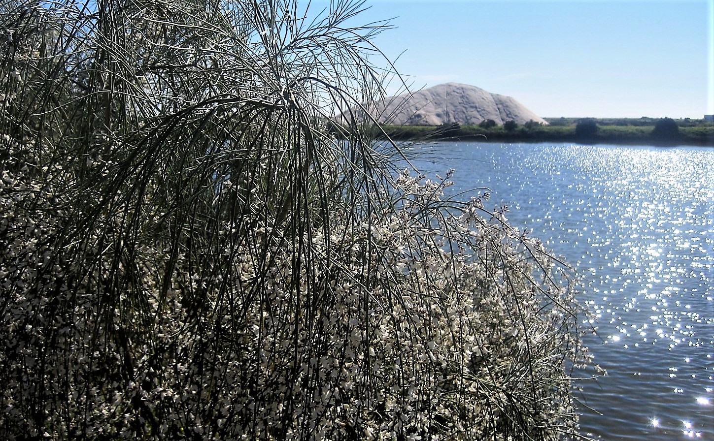 Two unusual forms of white, Jo! I’ve seen yellow and red brooms, this white one looks so tender and sweet. I love the idea of a salt mountain … I suppose you can’t go climbing on it?! 😀🌺