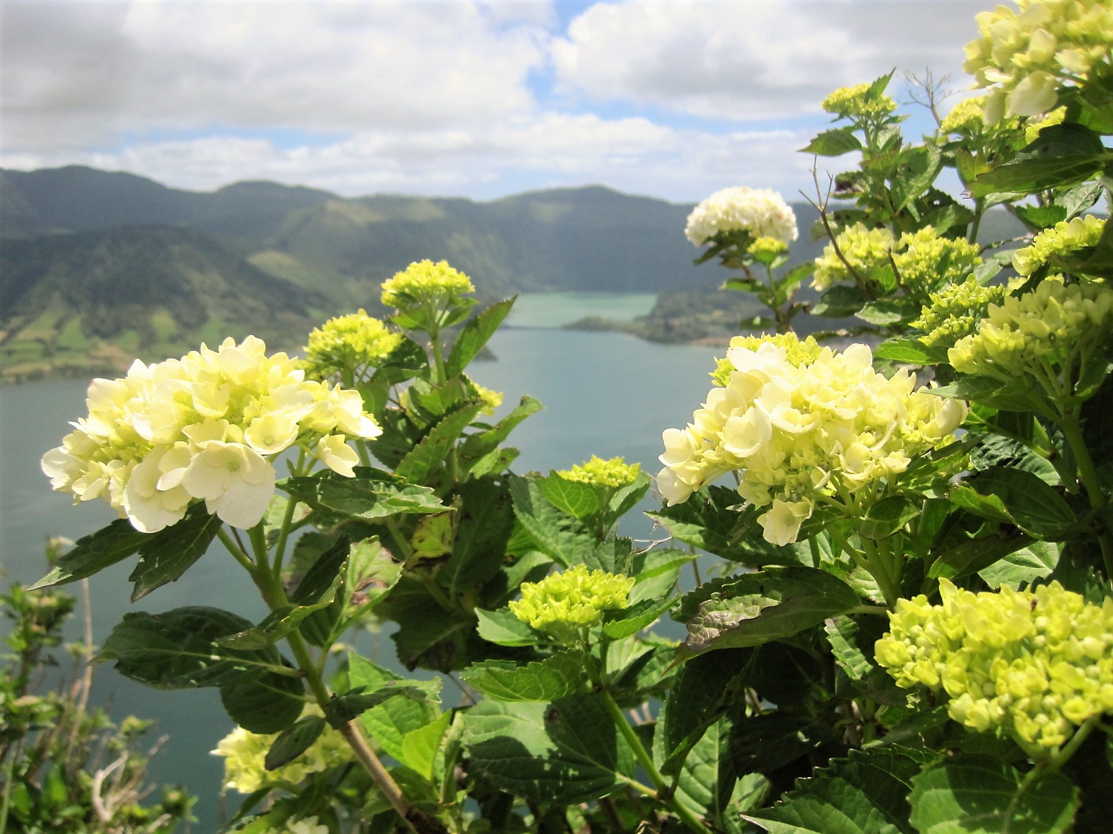 Whenever I read of the islands there would be reference to volcanic lakes, surrounded by hedges of hortensia, or Hydrangeas, as I know them.  A ‘Granny’ plant, I always thought of them, filling the front gardens of old ladies’ houses.  But the pictorial evidence showed lakes of blue and green, in Spring and Summer wrapped around with foaming, creamy blue mopheads, like nothing Granny had ever imagined.  For years I brooded on these.  Not given to extravagant holidays, whenever I caught sight of an offer I would avidly read the small print, wondering if this might be the one.  But the timing was never right.  Finally I suggested to my husband that it would make a brilliant 70th birthday present, but could ignite little interest from him.  He was focused completely on our intended move to the Algarve.  I knew that I could fly directly to the islands from Lisbon, so it made sense to be patient.
