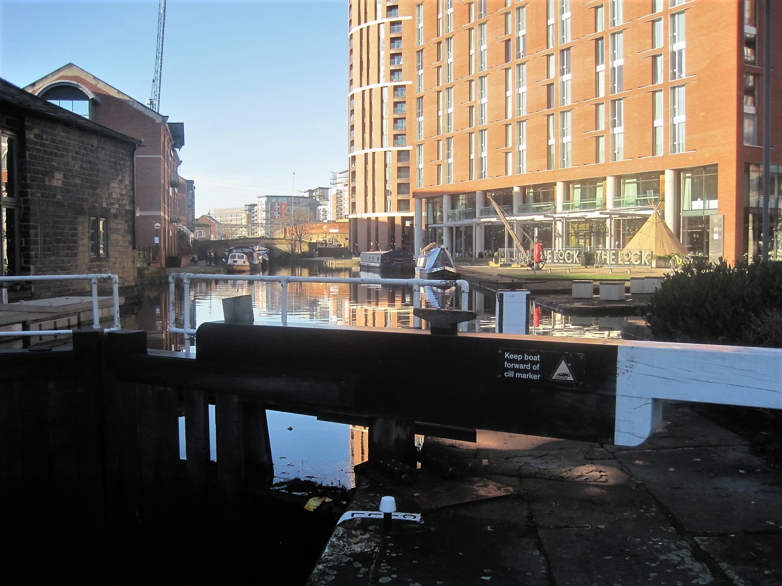 A colossal undertaking, primarily to transport coal for industry in the 18th century, the Leeds and Liverpool Canal runs for 204km in total, with 91 locks. We’re only covering a tiny section today, right in the centre of Leeds. It was Christmas Eve and I was avoiding the bustle of the city streets, whilst still hoping to meet our son for coffee. In places the canal runs parallel with the River Aire, offering an alternate route. Ugliness is a close neighbour with beauty here. One moment I’m admiring lily pads and reflections, the next confronted with urban scrawl and litter.