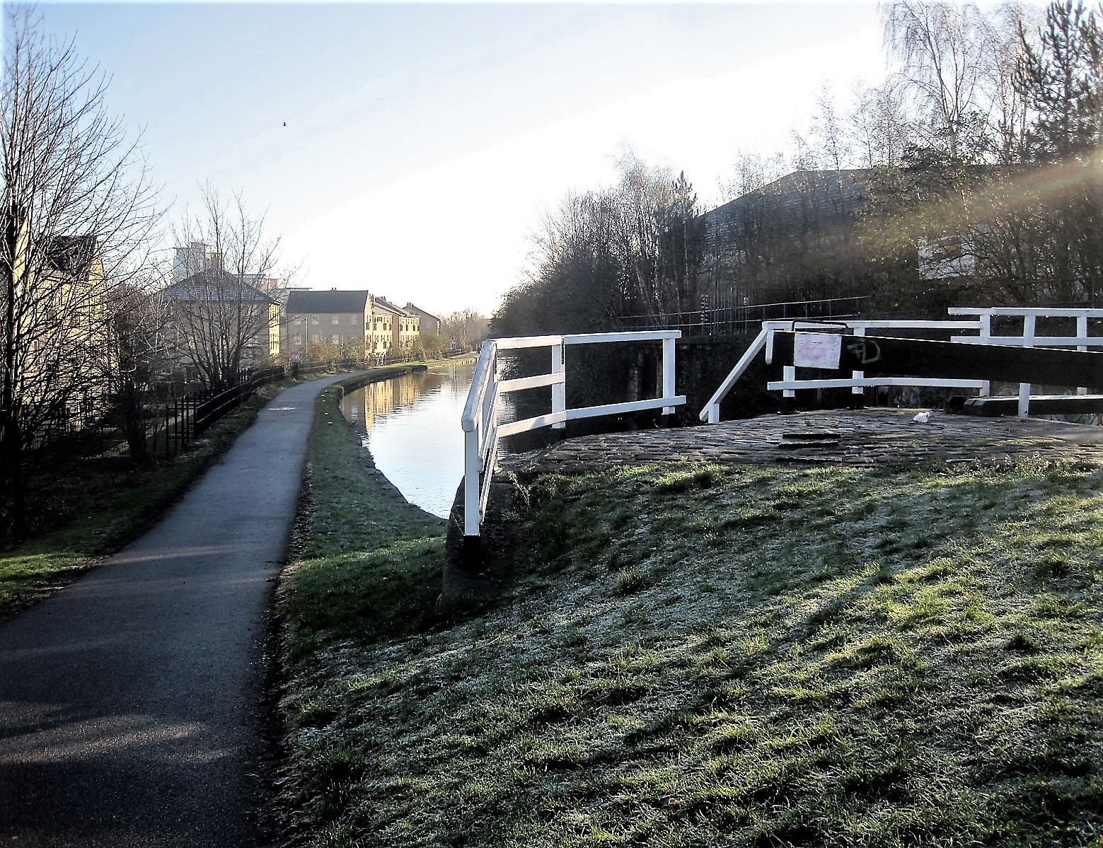Where the sun’s soft caress has yet to reach, a hard frost remains. I look back along the canal and know that I must retrace some of my steps. A coffee laced with Bailey’s awaits, but more importantly, my son.