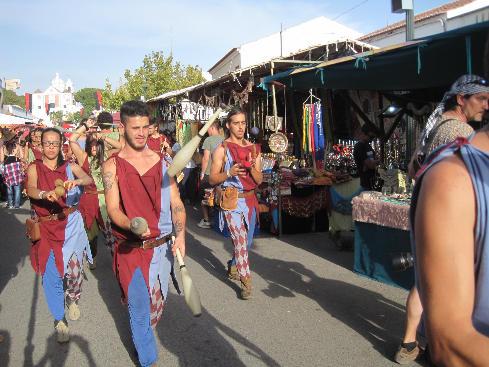 Back in the Algarve, the round of Summer festivals was still in full swing on my return. Even though I’ve been many times before, the Medieval Fair at Castro Marim is quite irresistible. The village, with its mighty twin castles, comes alive to a skirl of pipes and rhythmic, marching feet. Every conceivable vantage point is occupied for the parade- some of them quite precarious. I was one of the hypnotised audience.