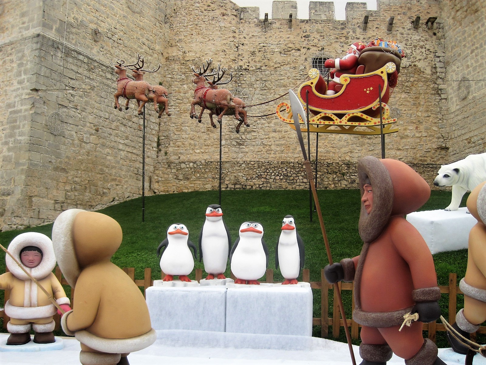 Ponte dos Álamos, the Bridge of Poplars, was built on a secondary Roman road that connected the now ruins at Milreu, north of Faro, with Loulé. Made unstable by the action of the water, the bridge was reconstructed and widened to permit traffic in 2011. It feels strange to be so close to the town and yet on the edge of open countryside. Curiosity satisfied, and vowing to follow the stream on our next visit, it’s time to head back to the centre. The sun is going down and soon the Christmas lights will come on. Look! There’s Santa flying past the castle.