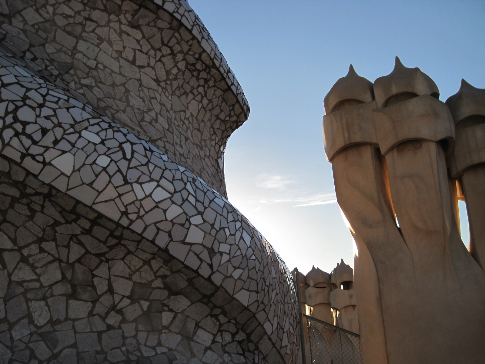 This mirror image of an upside down chandelier in the attic of Gaudi’s Casa Mila thoroughly captivated me. I edged close to admire the delicate threads, looked down, and an immediate smile came to my lips. Genius to place the mirror beneath, reflecting the vaulted brick arches so subtly.