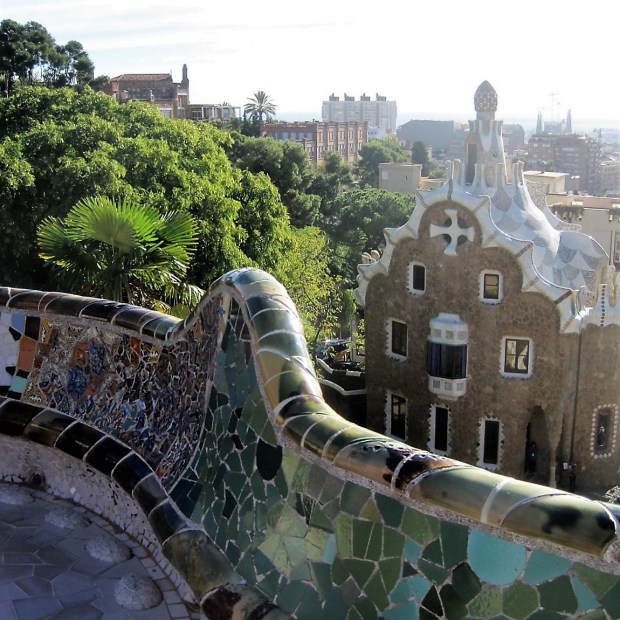 We’ve moved on today. Still with Gaudi, dominating the skyline, but now in Parc Guell. La Sagrada Familia is still visible in the distance.