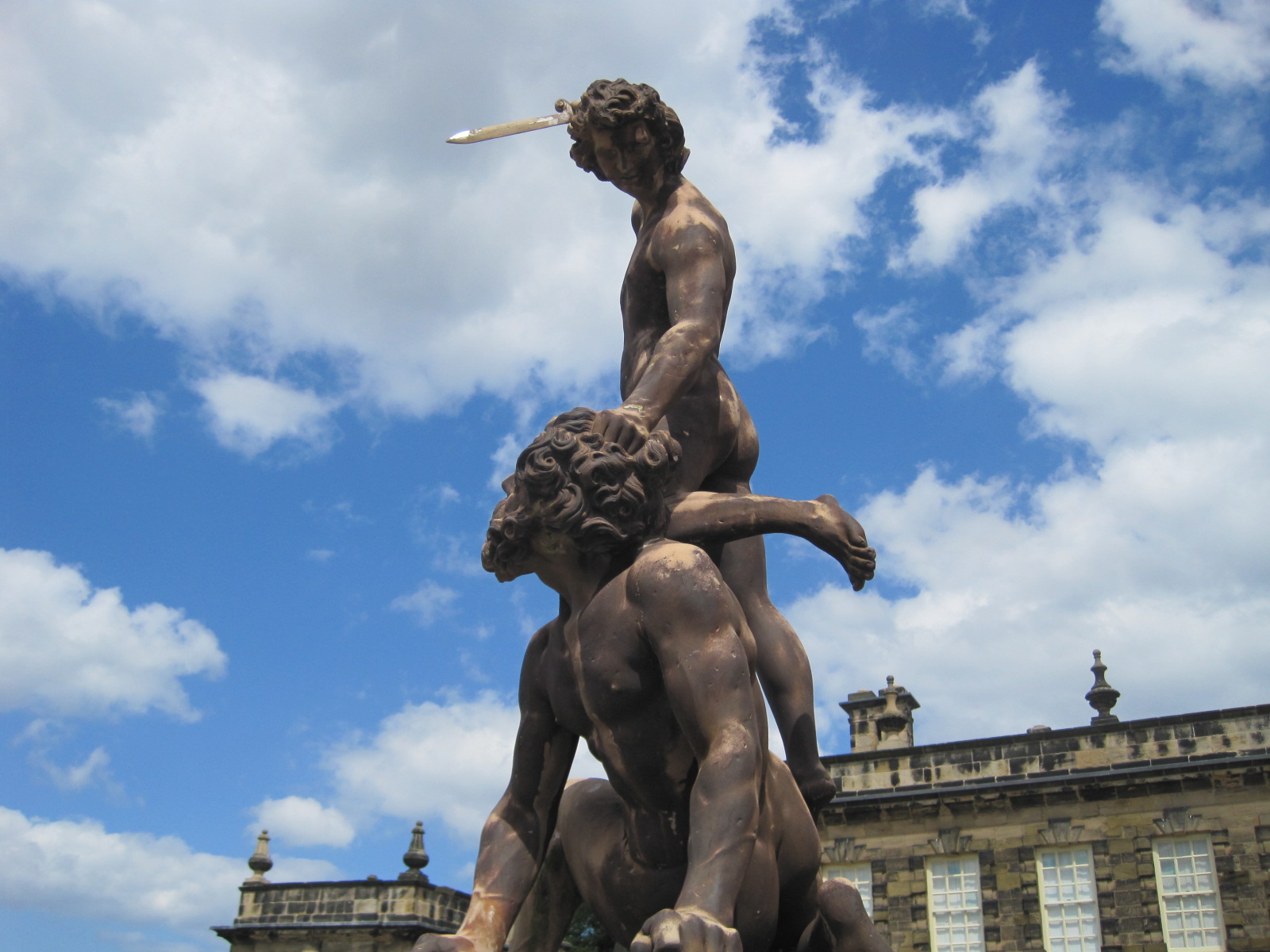 The six statues represent the muses of sculpture, painting, architecture, astronomy, geography and music. Apparently they were made in situ, from an iron framework covered in tile, brick and plaster to produce a mannequin. Muslin beneath layers of stucco plaster created a very realistic appearance. Conservation enthusiasts might enjoy the Hall’s blog.