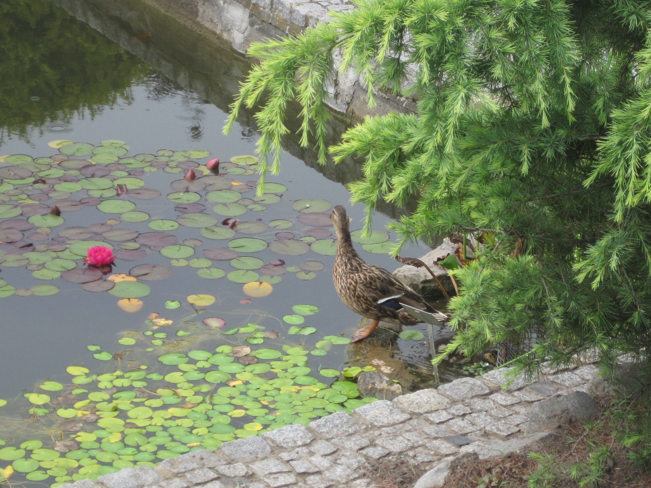 Rounding a bend, I heard the gentle chuckle of water. A waterfall had formed in a deep cleft in the rocks, and I peered into its clear green depths. On the stiller waters nearby, tiny white starlets floated.