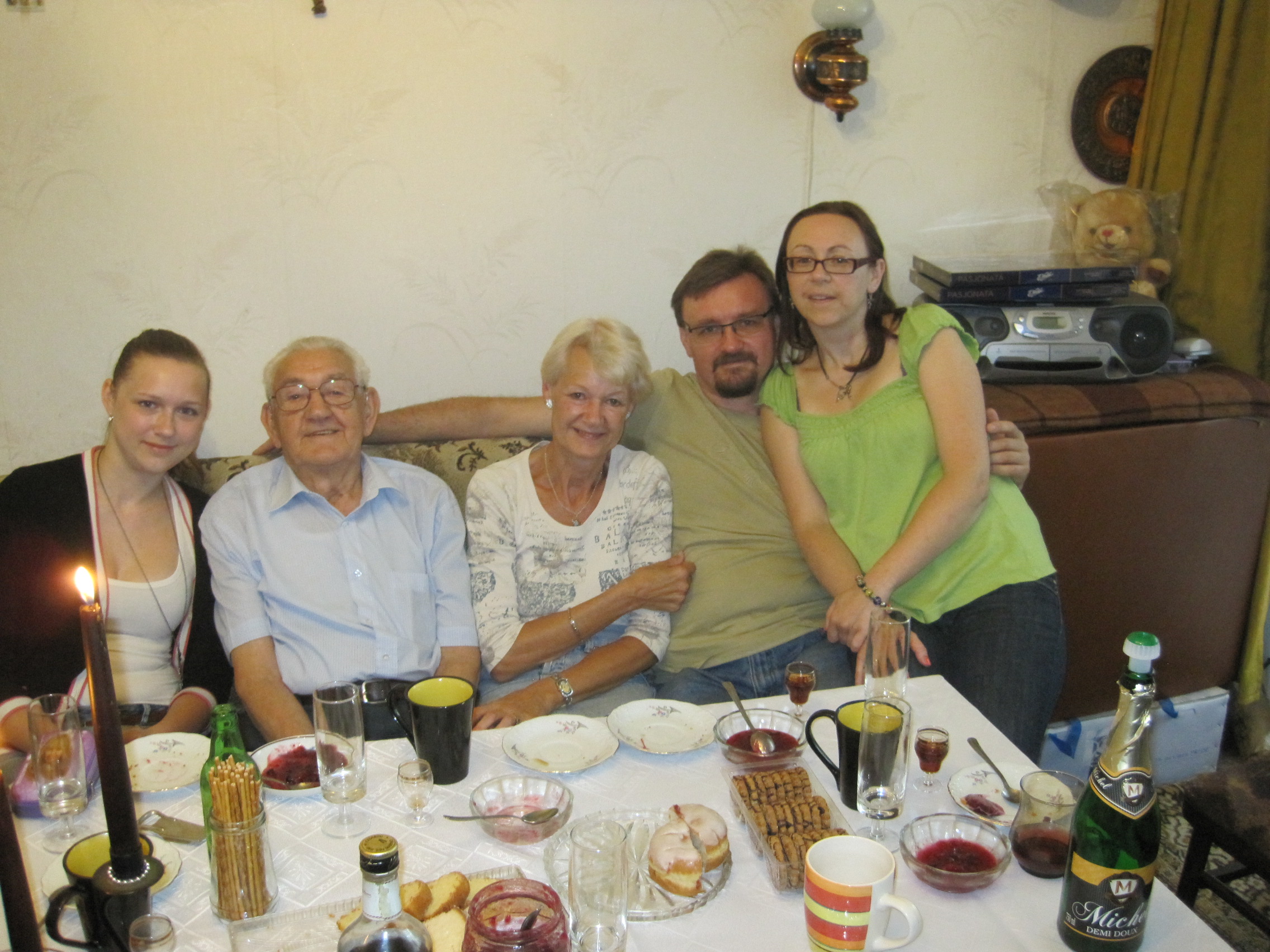 The famous jam, niece Basia, Dad, me, cousin Wojtek and his wife Agnieszka